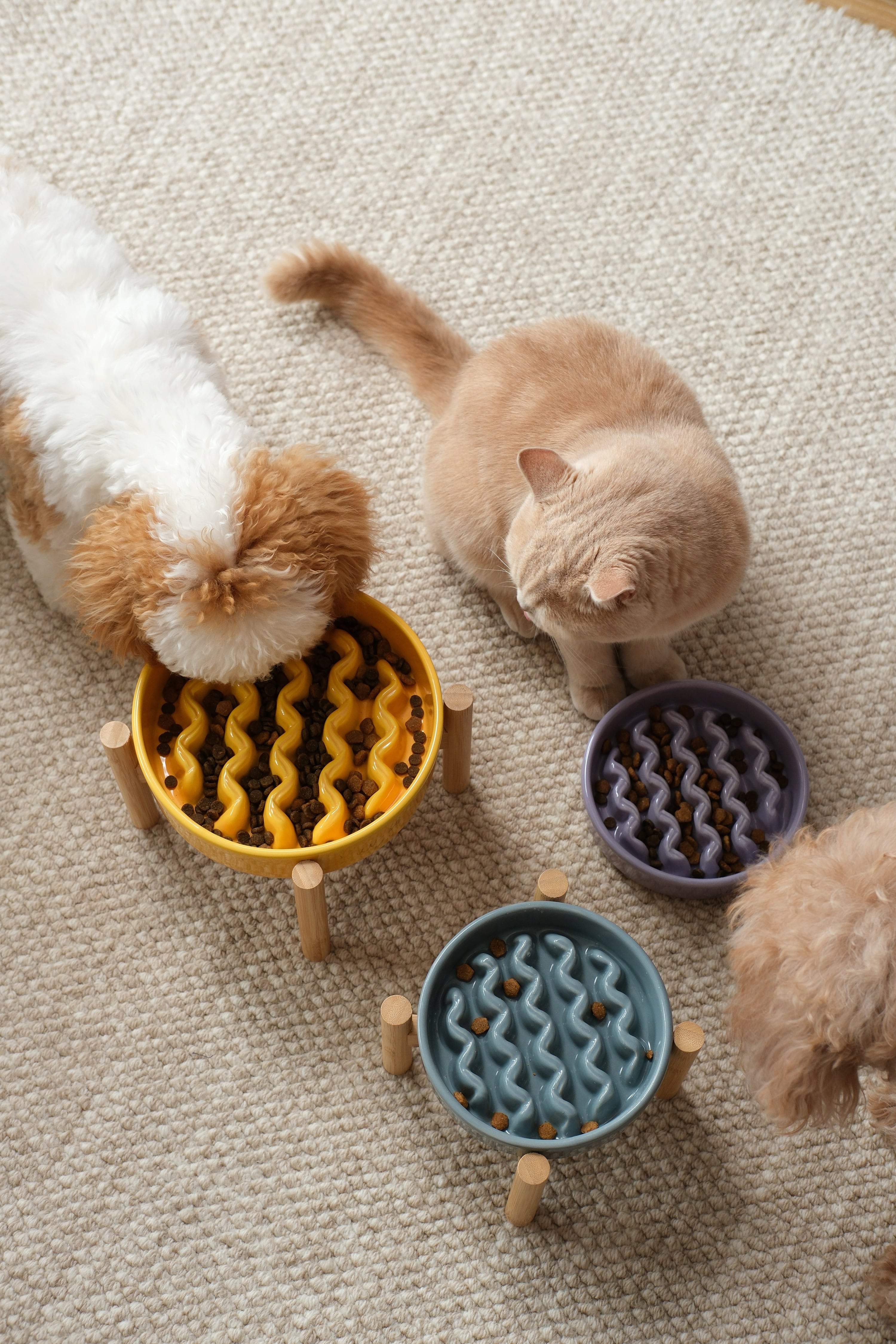 マカロニ - S サイズ -スタンド付き【Pehom】台 フードボウル セラミック ノンスリップ エンリッチメント 犬 知育 スローフィーダー 早食い防止 Macaroni Bowl