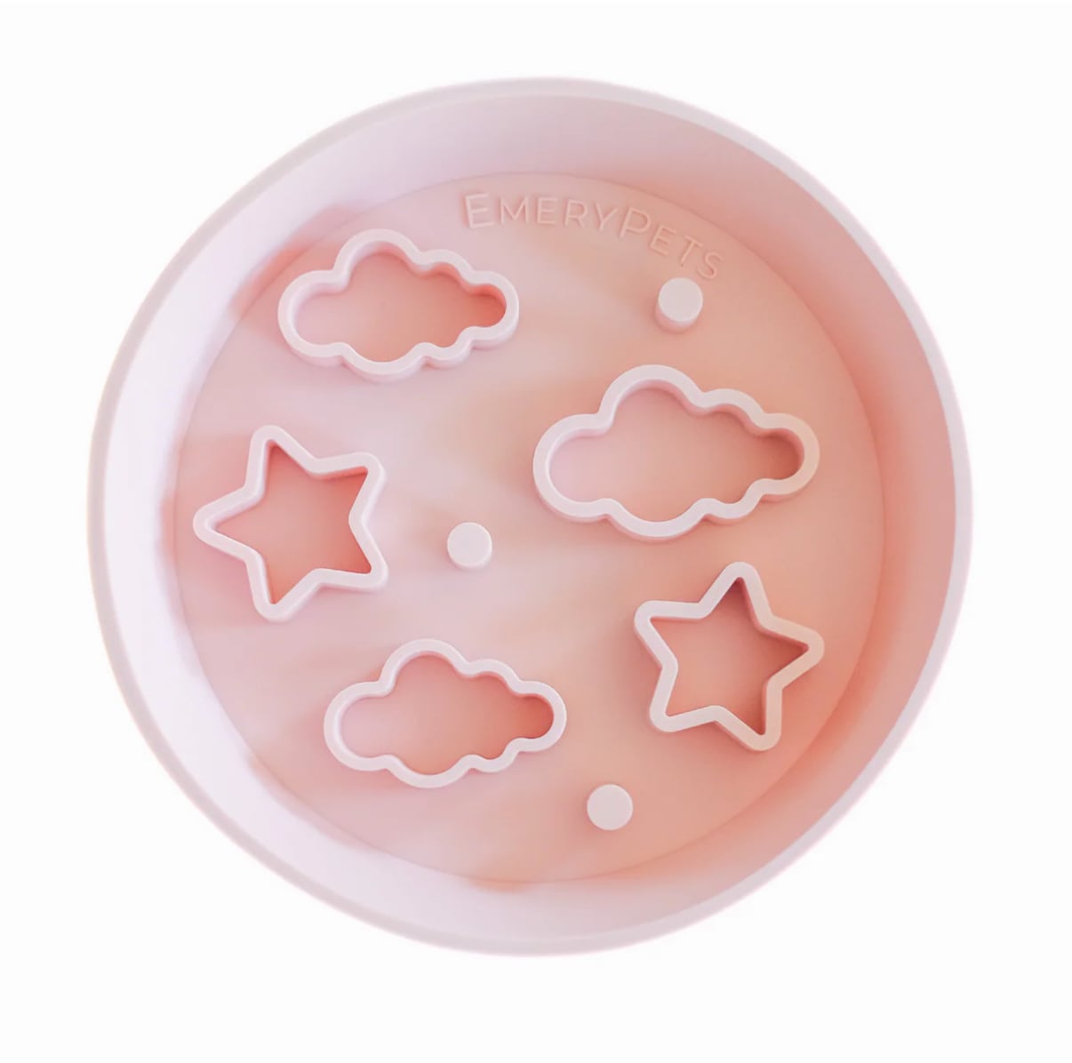 スター+クラウドスローフィーダー M【Emery Pets】中型犬 大型犬 星 雲 早食い防止 フードボウル 犬 エンリッチメント 知育 シリコン ピンク 青