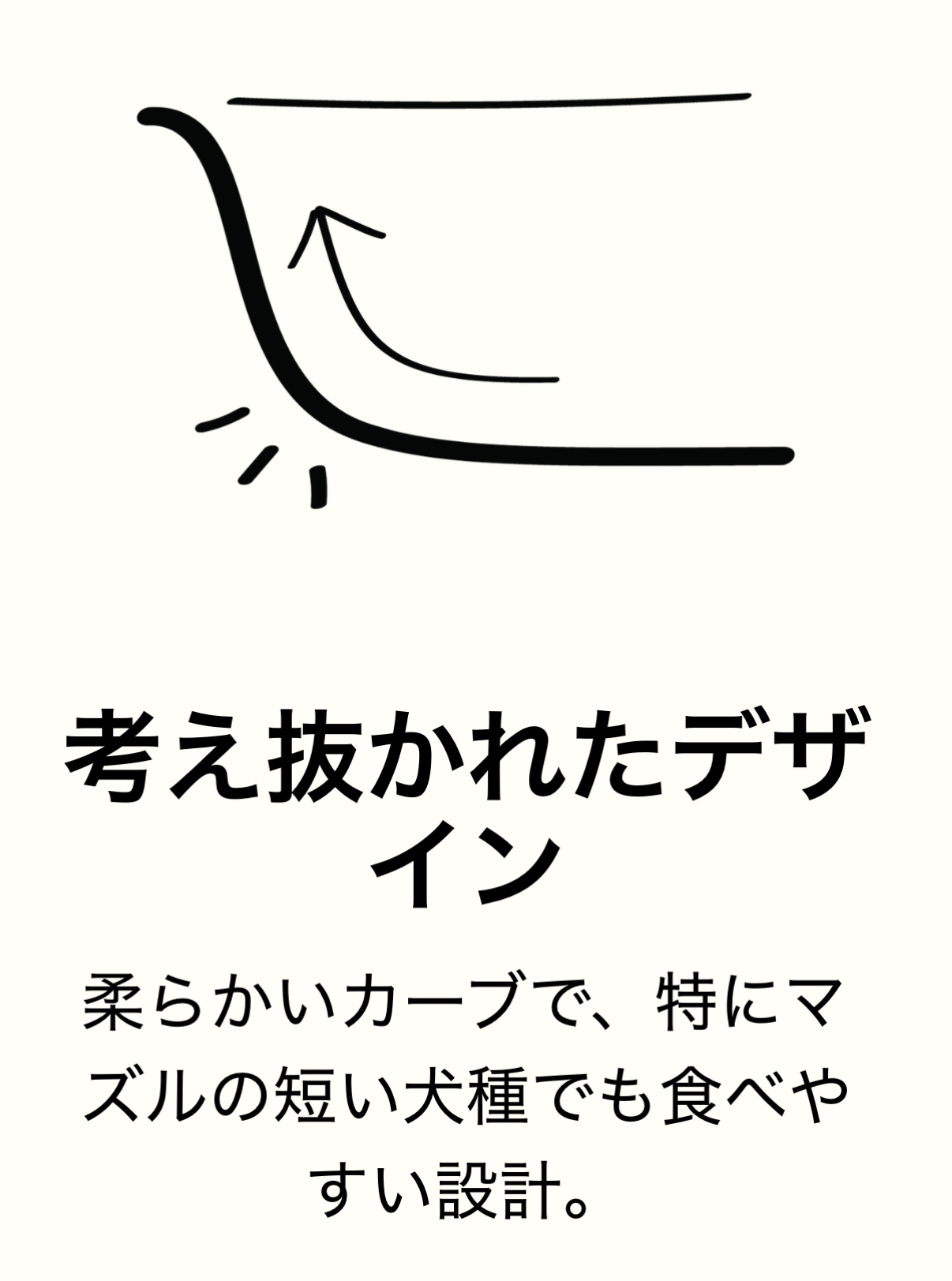 柔らかい角: 丸みを帯びた縁は、食べ物が詰まるのを防ぎ、特にマズルの短い犬種でも快適に食事ができます。