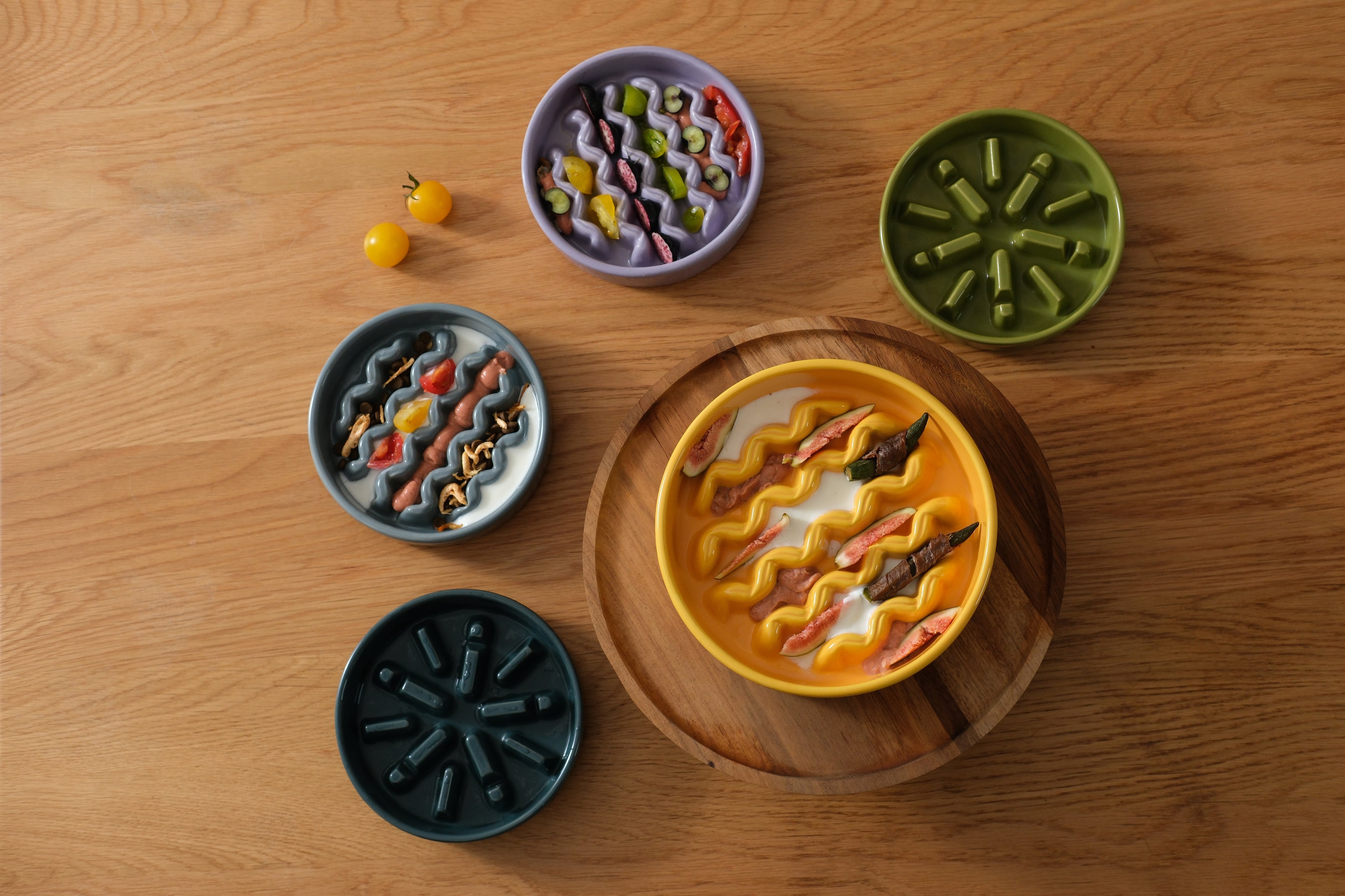 マカロニ - M サイズ -【Pehom】フードボウル セラミック ノンスリップ エンリッチメント 犬 知育 スローフィーダー 早食い防止 Macaroni Bowl