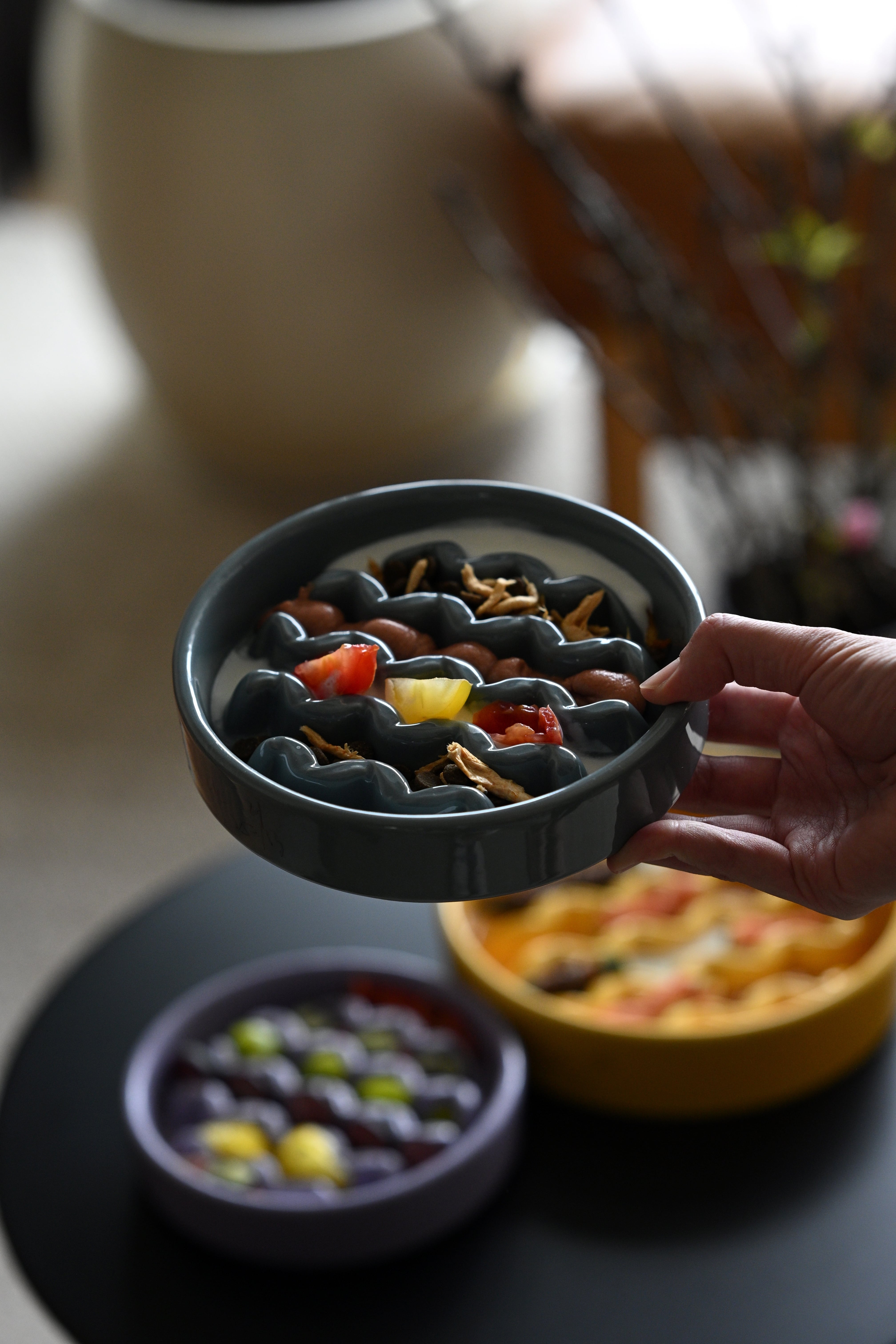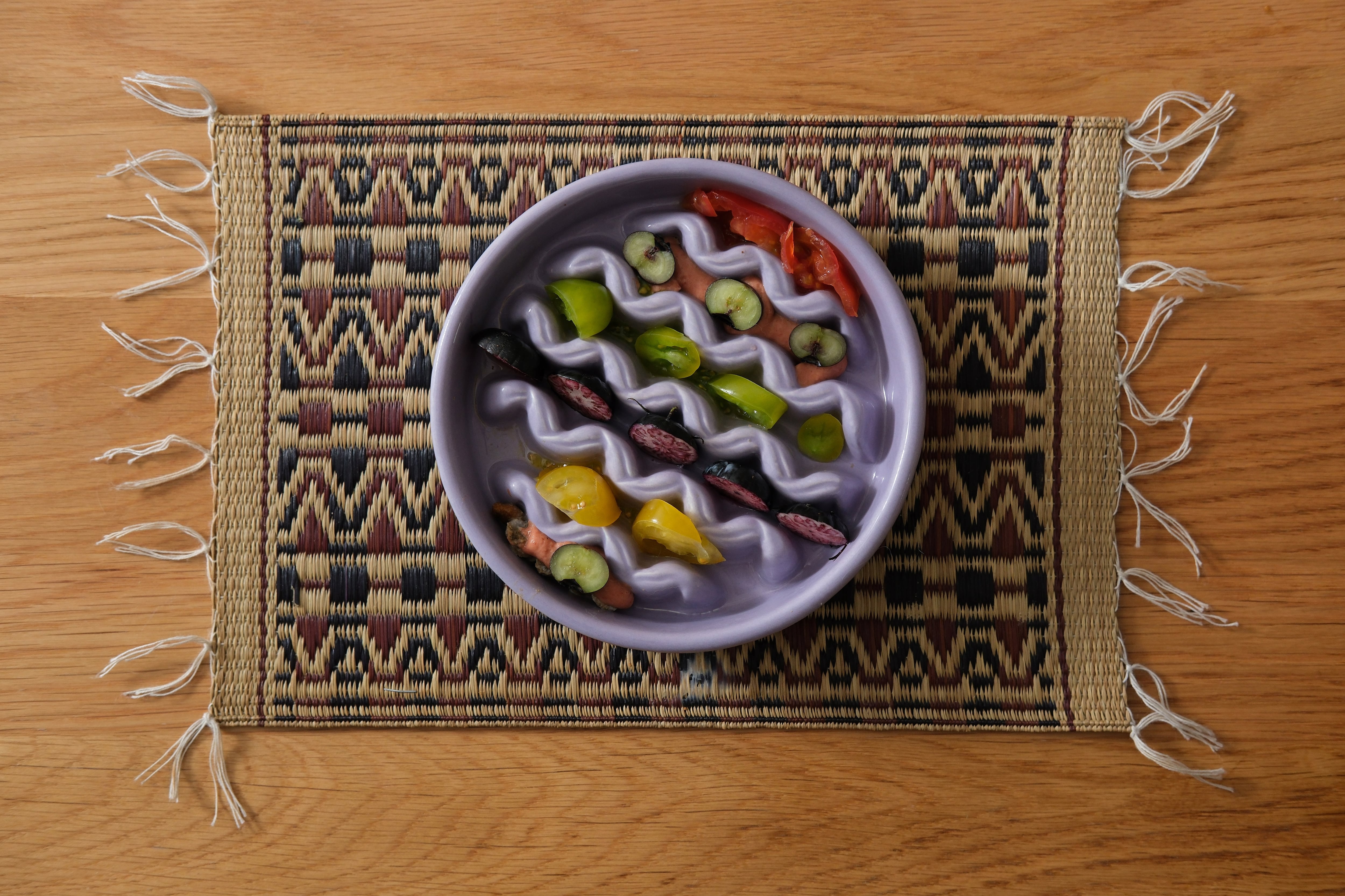 マカロニ - M サイズ -スタンド付き【Pehom】台 フードボウル セラミック ノンスリップ エンリッチメント 犬 知育 スローフィーダー 早食い防止 Macaroni Bowl