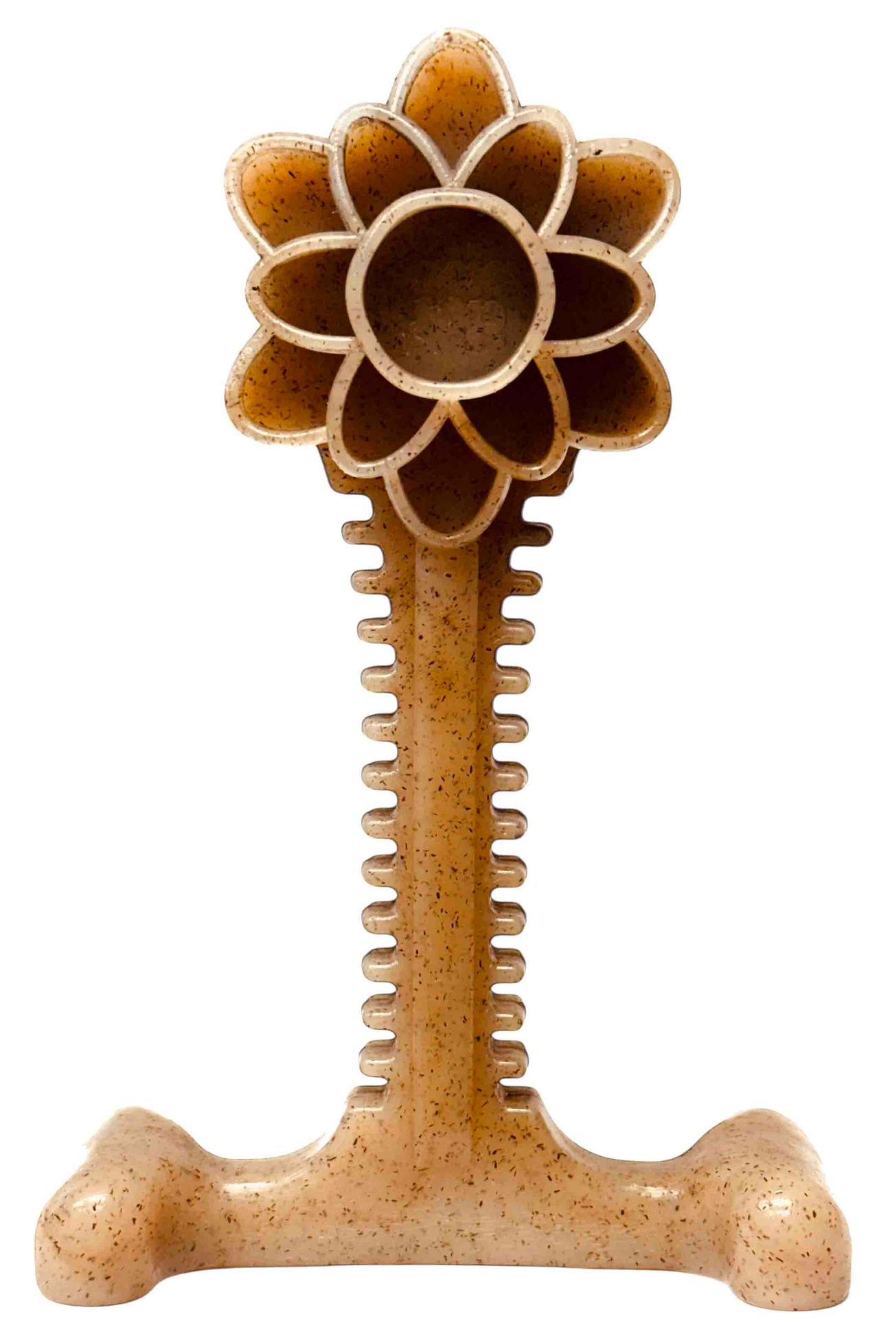 一般的なナイロン製の骨や滑らかなチュースティックとは異なり、デンタルフラワータワーは、噛むたびに歯の健康を促進する特殊なテクスチャ加工が施されています。ハニーディッパー型は複数のグリップポイントを備え、犬が長く遊び続けるデザインになっています。また、隆起した花模様は歯垢を削り取り、歯茎を自然にマッサージします。