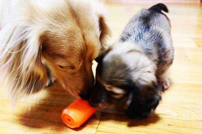 おやつを入れて遊ばせたり、カミカミおもちゃとしても楽しんでいただける丈夫な天然ゴムのおもちゃ